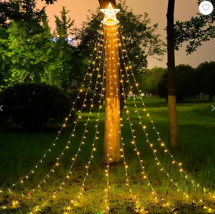 Ilumina tu Navidad con las Luces Solares Cascada de ChispaTech Prodigios, el toque perfecto para decorar tu árbol navideño, terraza, jardín o interiores con un efecto mágico y elegante.